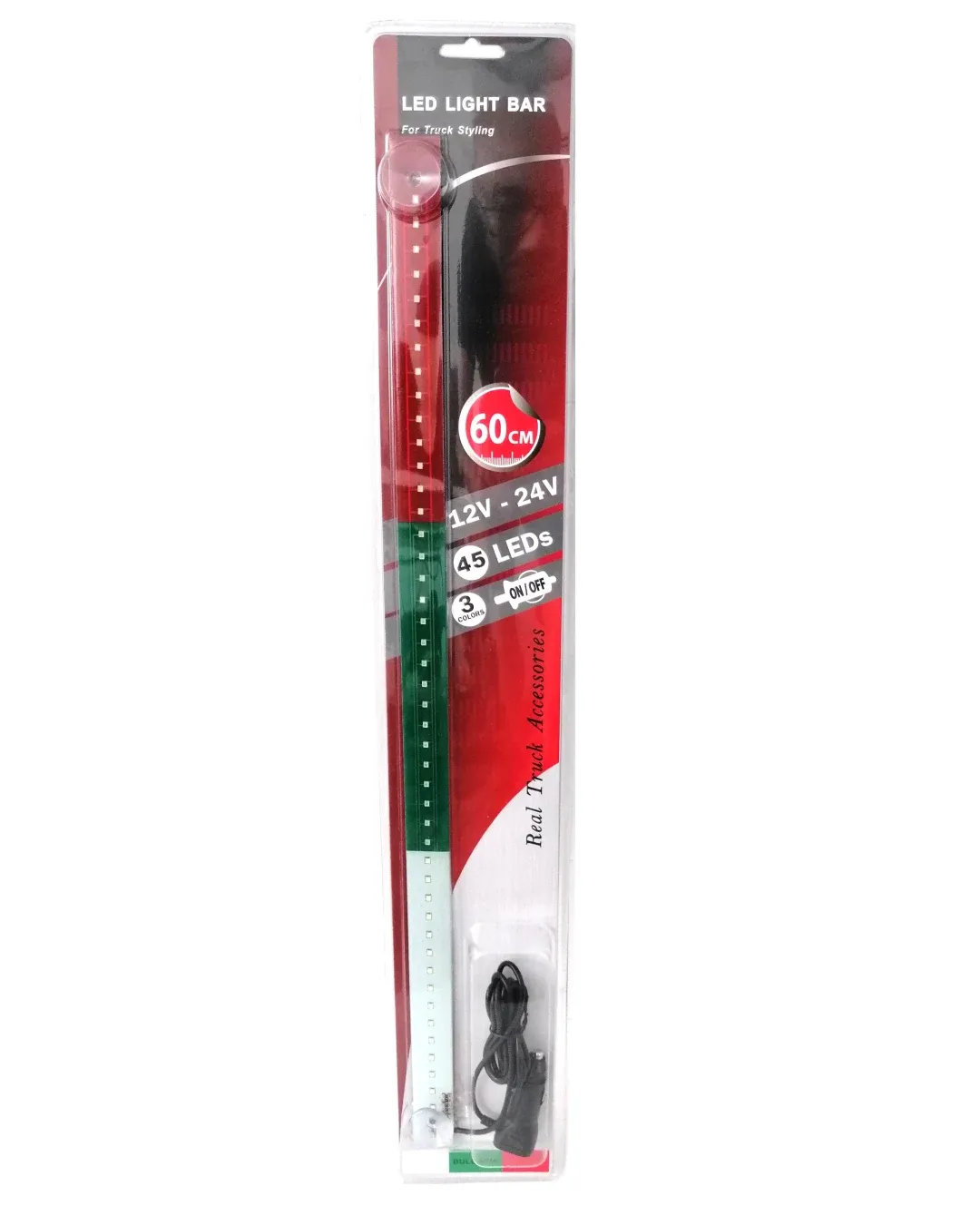 Нов дизайн и идея, придаващи фантастичен облик на Вашия автомобил, камион, бус и др.Изключително ЛЕСНА инсталацияВолтаж : 12V - 24VДължина 60cm45 светодиода с ON/OFFЩепсел за запалка150 см дължина на кабелаЗакрепване 2бр. вендузи за стъклото