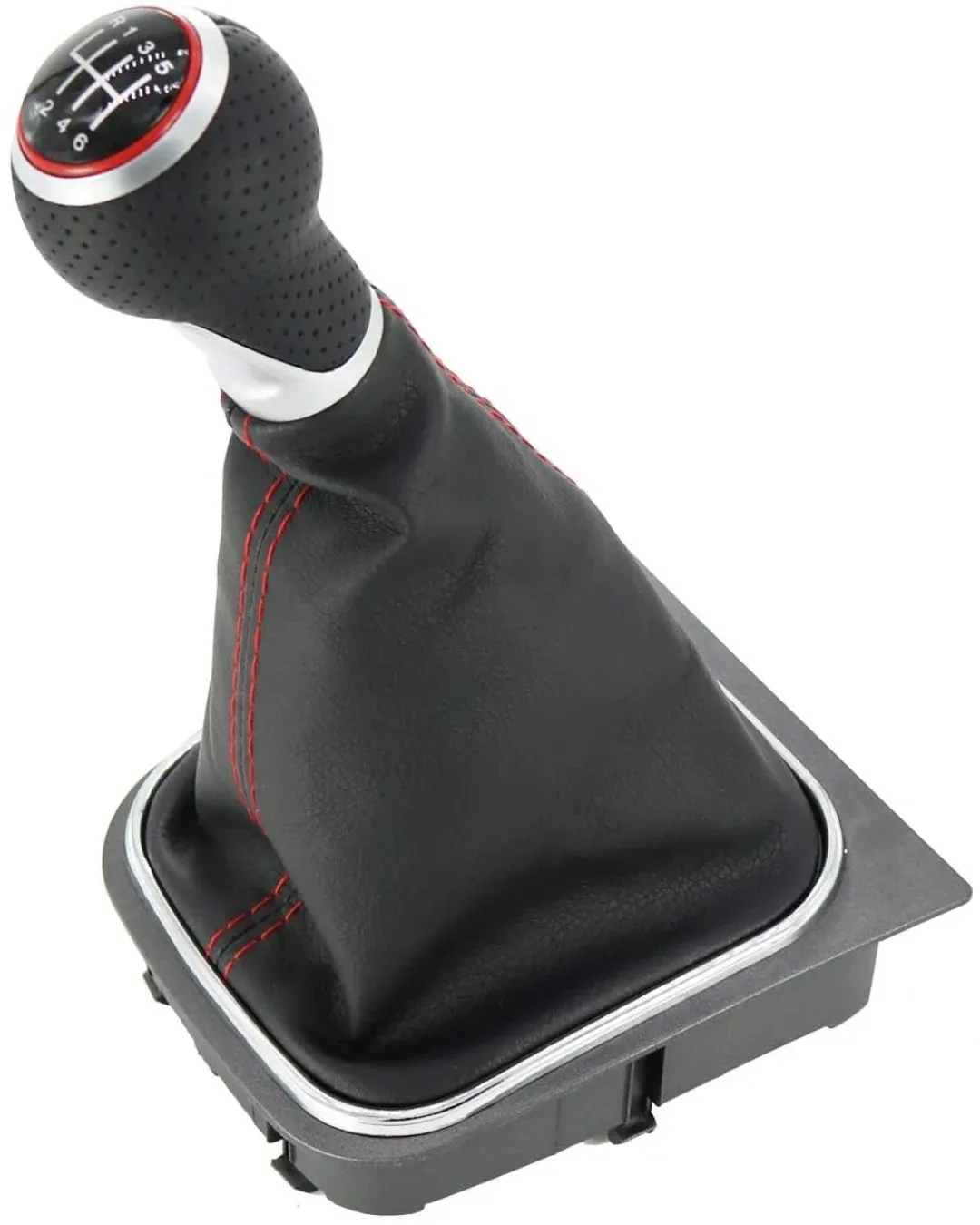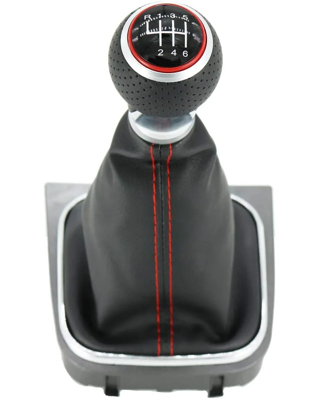Tопка Скоростен Лост С Маншон, Черна с Червен Кант, Хром, Кожен Кожух, Фолксваген Голф Volkswagen VW Golf 6 A6 MK6 GTI GTD R20 2009 - 2013