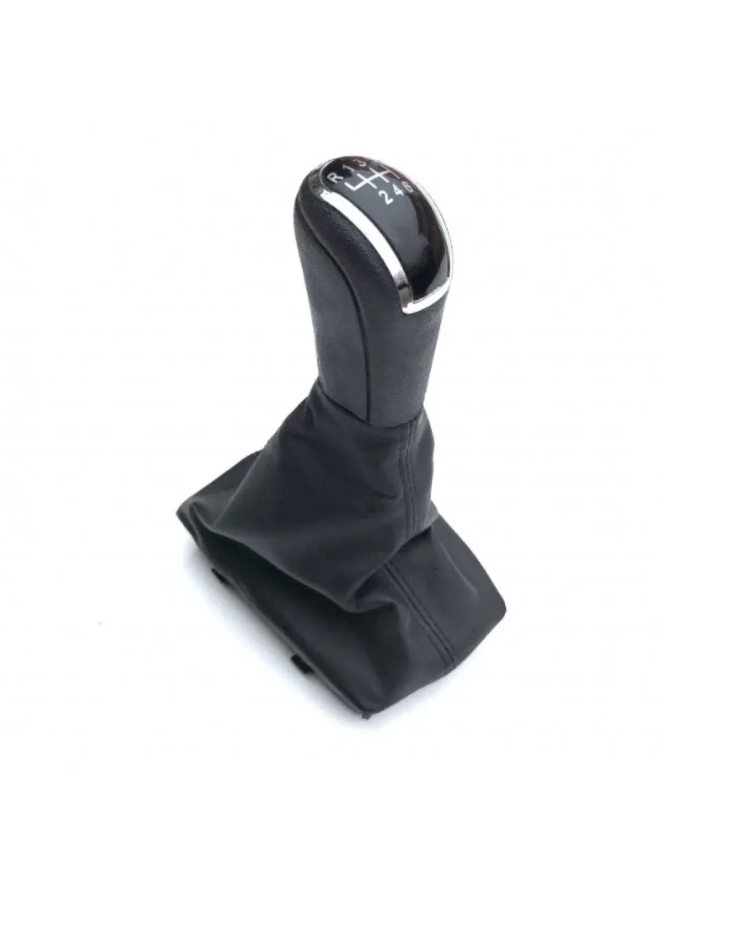 Комплект топка за скоростен лост с маншон, съвместим със Audi A4 B8. Предназначен за подмяна на износен или повреден компонент, като възстановява оригиналната визия и удобството при превключване на предавките. Маншонът е изработен от еко кожа с двоен шев. Топката е с обозначена схема на превключване за 5-степена ръчна трансмисия.