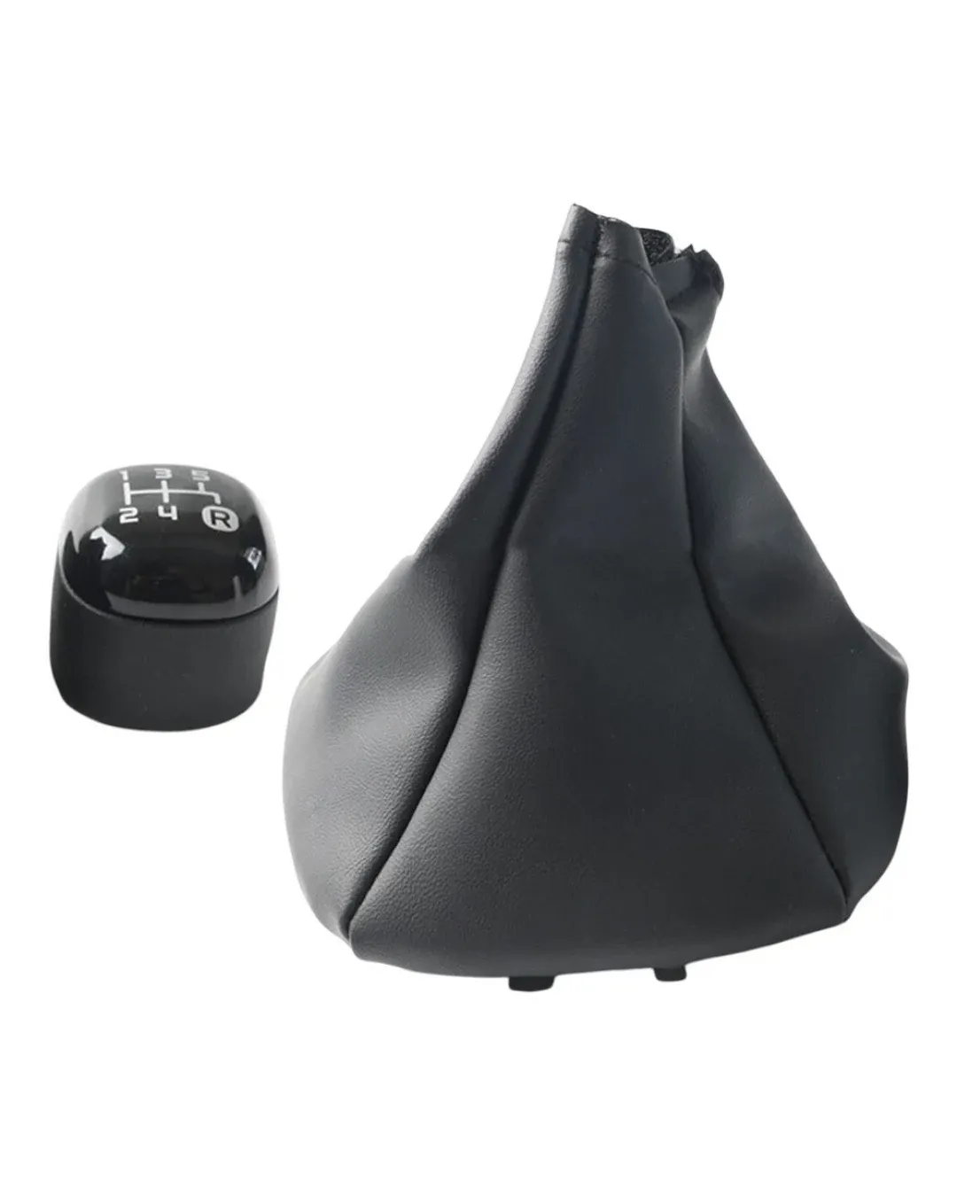 Комплект топка за скоростен лост с маншон, съвместим със FIAT Panda III. Предназначен за подмяна на износен или повреден компонент, като възстановява оригиналната визия и удобството при превключване на предавките. Маншонът е изработен от еко кожа с двоен шев. Топката е с обозначена схема на превключване за 5-степена ръчна трансмисия.