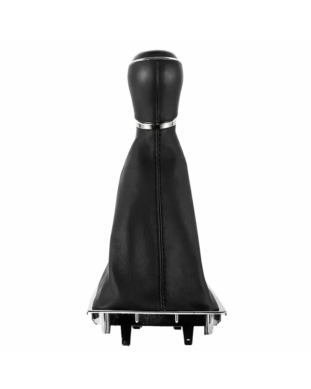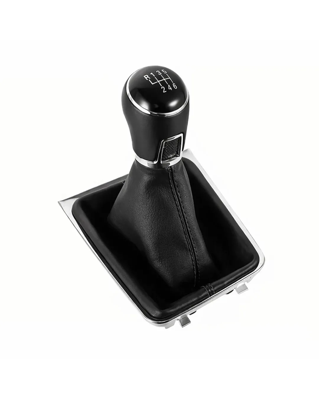 Комплект топка за скоростен лост с маншон, съвместим с Volkswagen GOLF 7. Предназначен за подмяна на износен или повреден компонент, като възстановява оригиналната визия и удобството при превключване на предавките. Маншонът е изработен от еко кожа с двоен шев. Топката е с обозначена схема на превключване за 5-степена ръчна трансмисия.