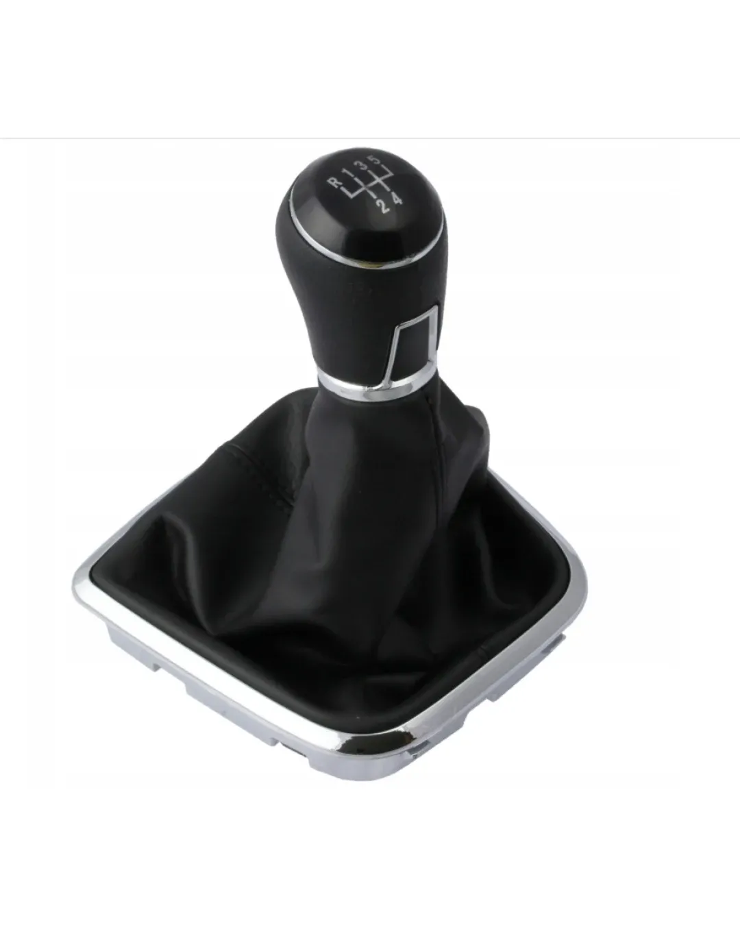 Комплект топка за скоростен лост с маншон, съвместим с Volkswagen Polo 6R 6C. Предназначен за подмяна на износен или повреден компонент, като възстановява оригиналната визия и удобството при превключване на предавките. Маншонът е изработен от еко кожа с двоен шев. Топката е с обозначена схема на превключване за 5-степена ръчна трансмисия.