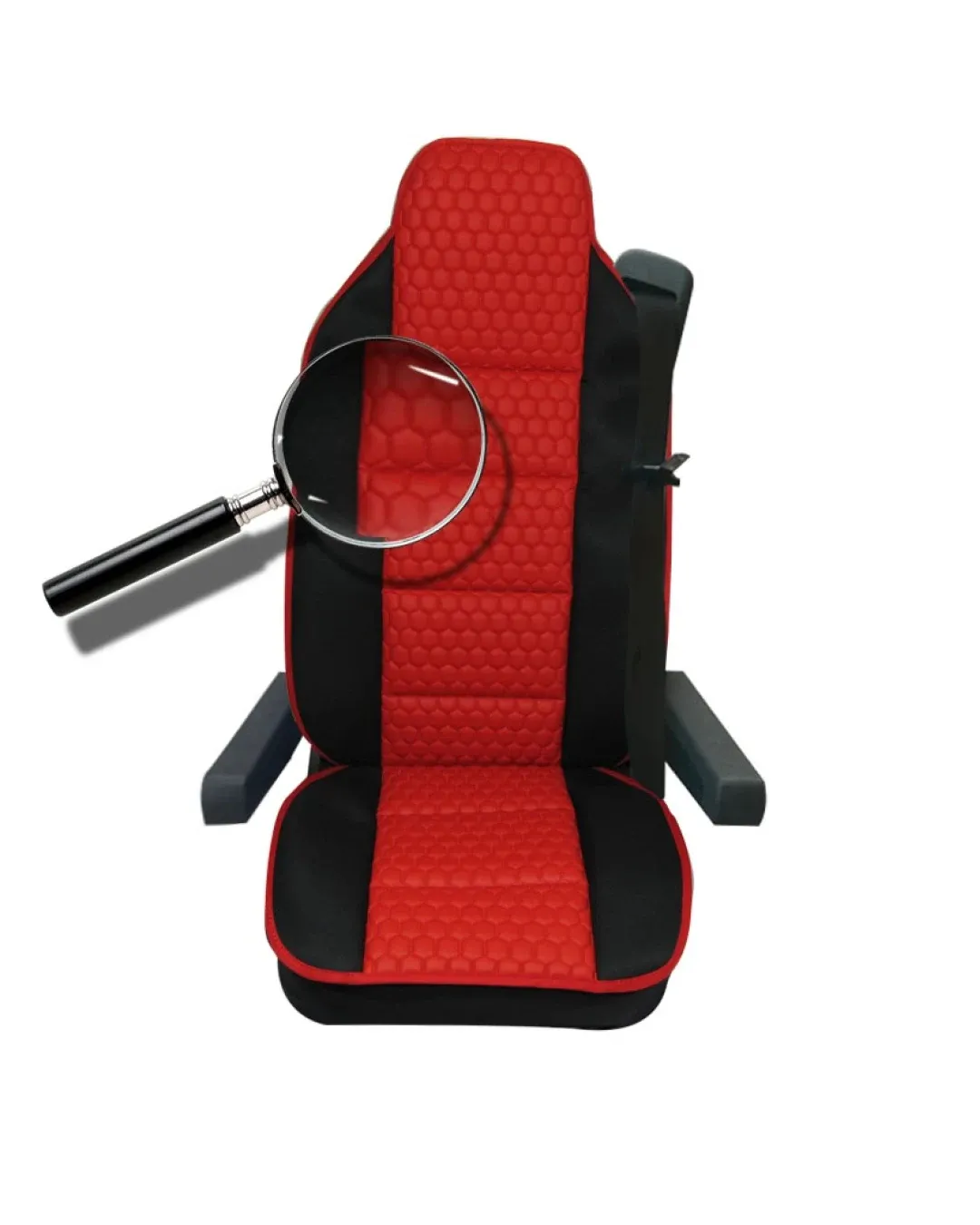 Универсален калъф за седалка на камион - релефен - еко кожа и текстил - Volvo, DAF, Man, Scania, Mercedes, Iveco - червено с черно