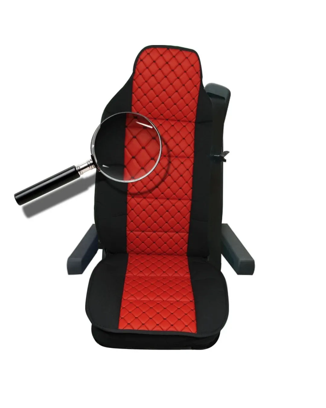 Универсален калъф за седалка на камион - релефен - еко кожа и текстил - Volvo, DAF, Man, Scania, Mercedes, Iveco - червено с червен конец