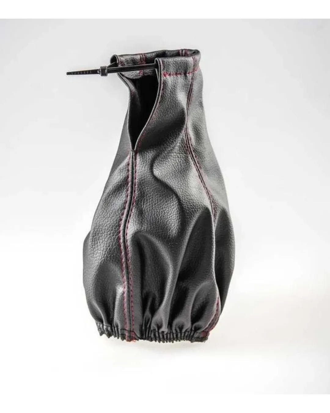 Универсален маншон калъф за скоростен лост от висококачествена еко кожа черен със червен шев