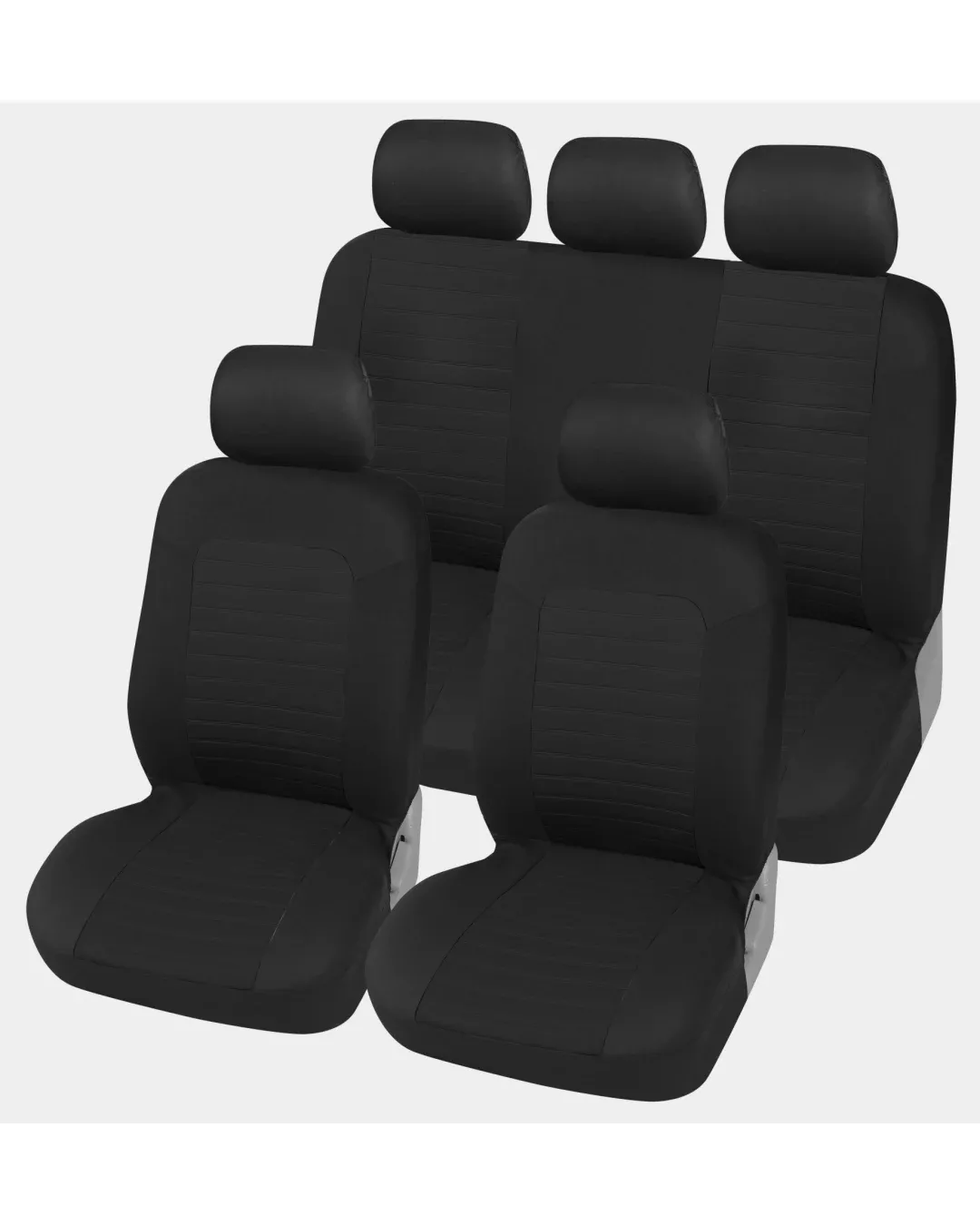 Универсална Авто тапицерия Kалъфи За Седалки Пълен Комплект 9 Части Черно
