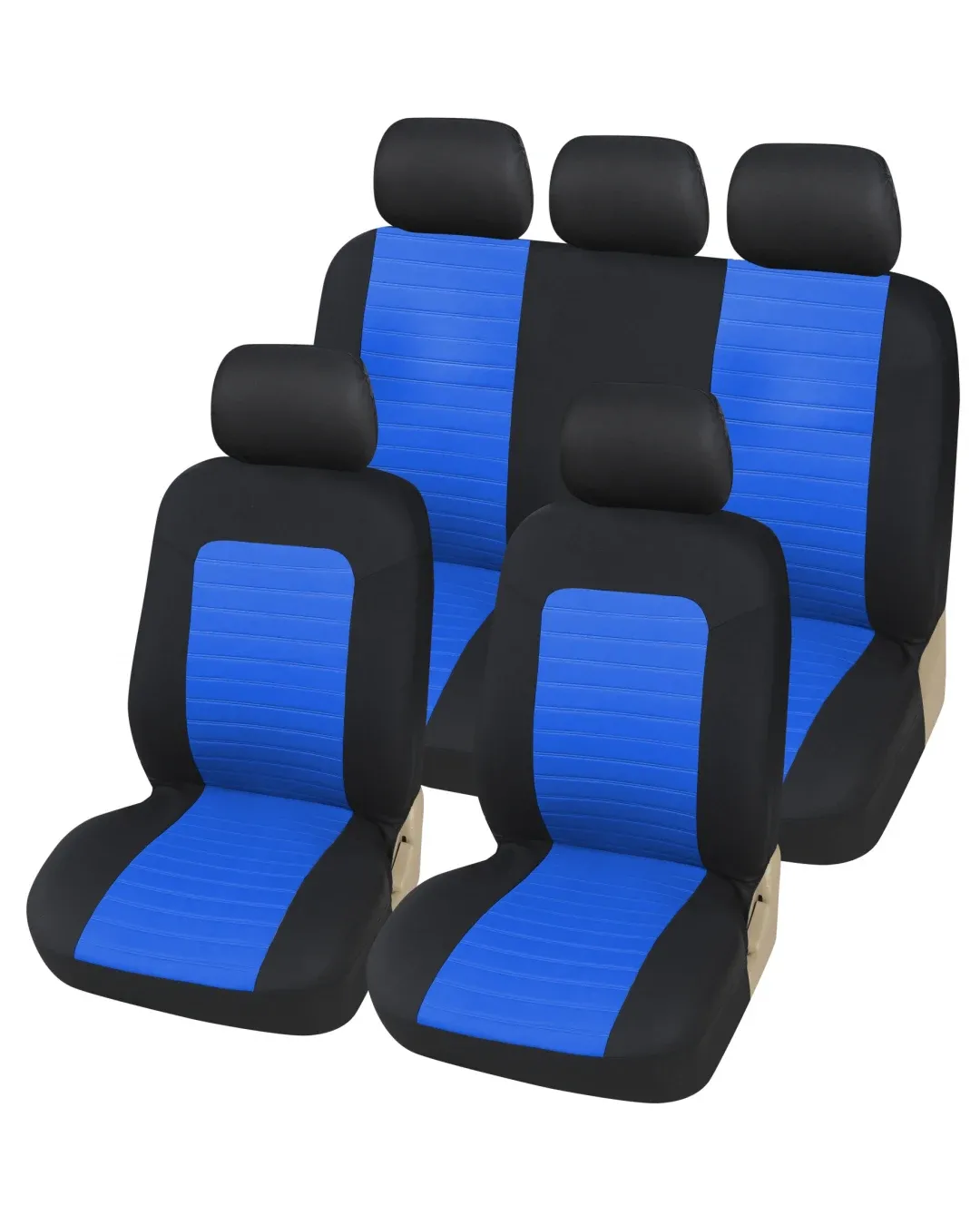 Универсална Авто тапицерия Kалъфи За Седалки Пълен Комплект 9 Части Черно Синьо