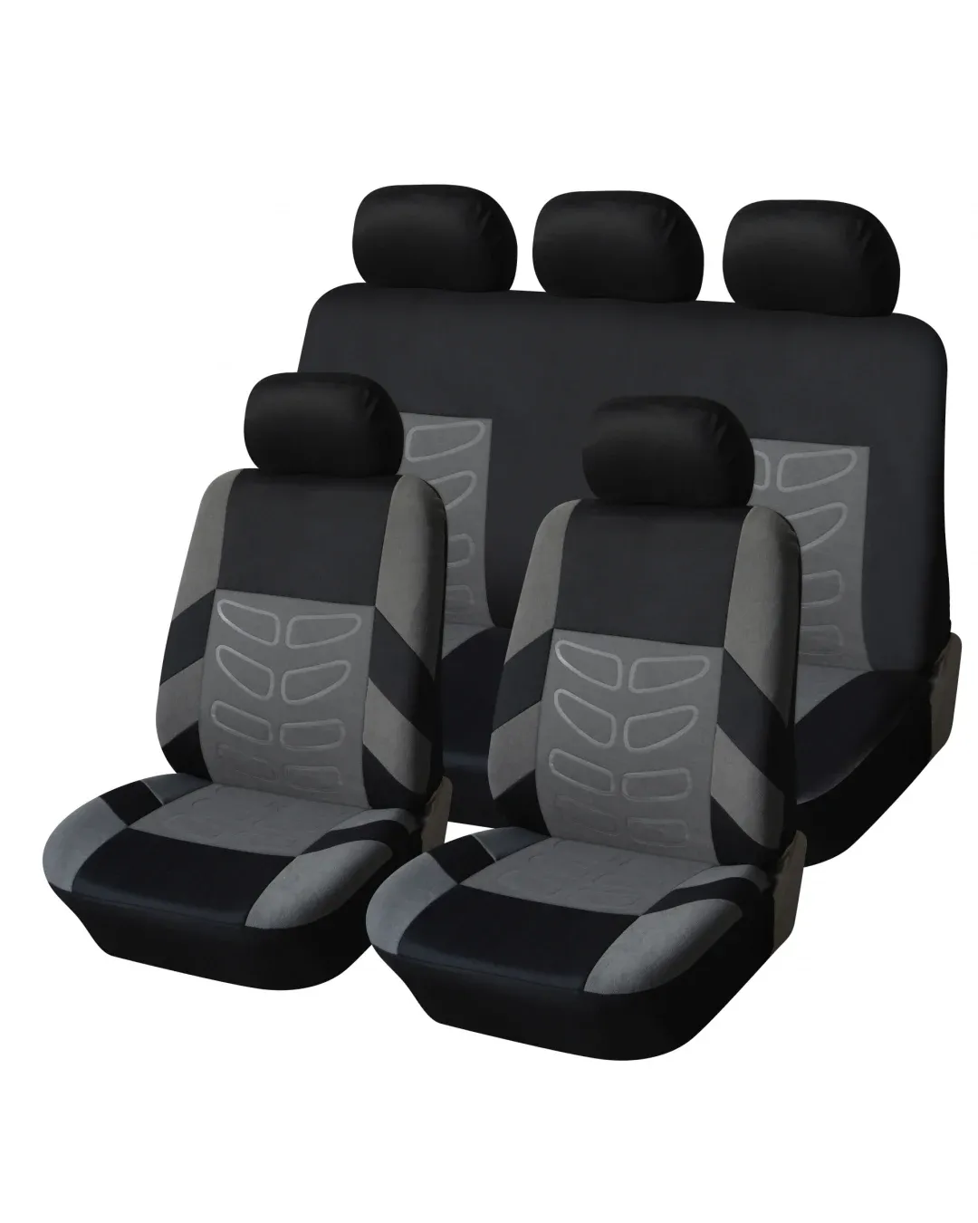 Универсална Авто тапицерия Kалъфи За Седалки Пълен Комплект 9 Части Сиво Черно TAP467