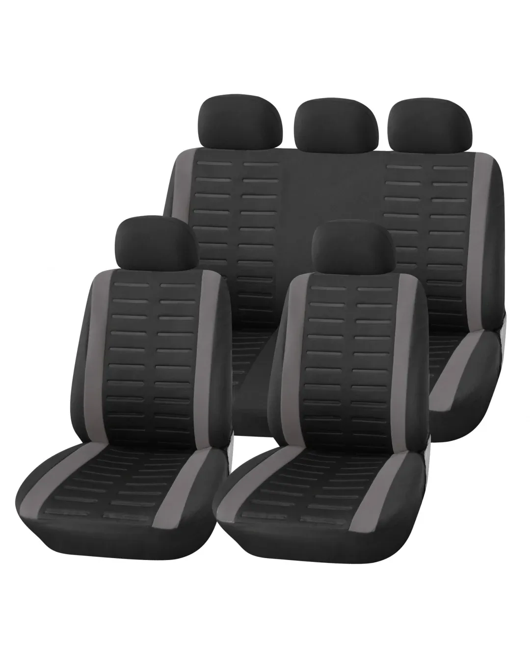 Универсална Авто тапицерия Kалъфи За Седалки Пълен Комплект 9 Части Сиво Черно TAP470