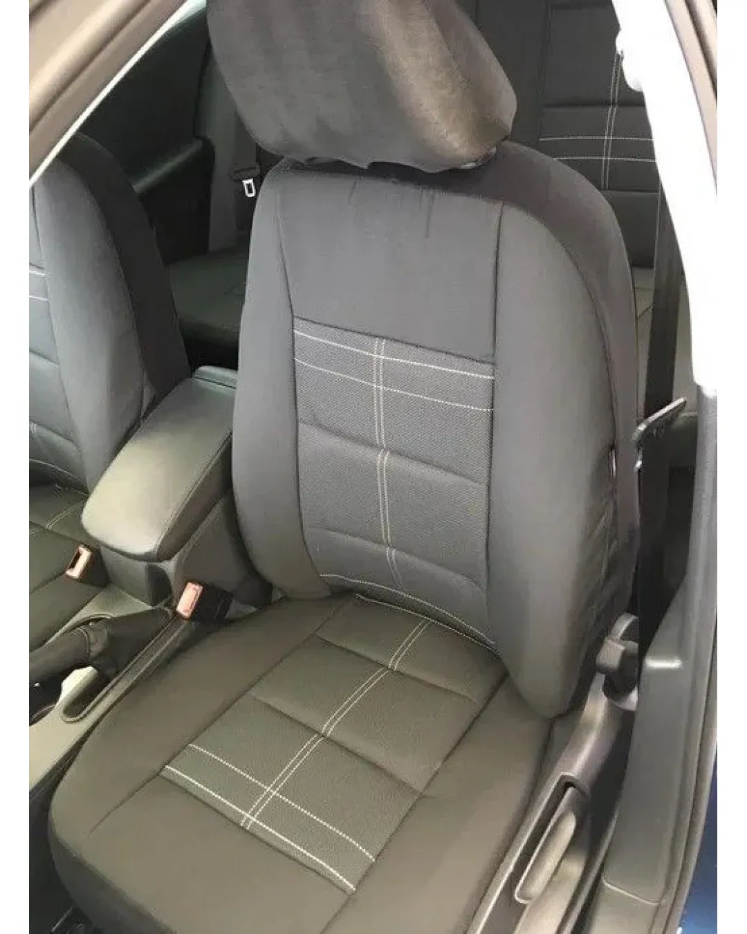 2 калъфки за предните седалки; 2 подглавника за предните седалки; калъф за задна седалка; калъф за облегалка; 3 подглавника за задната седалка.