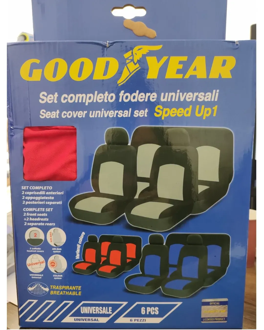 Нова универсална тапицерия пълен комплект калъфи за предни и задни цели седалки от текстил в червено-черно Goodyear Гудиър