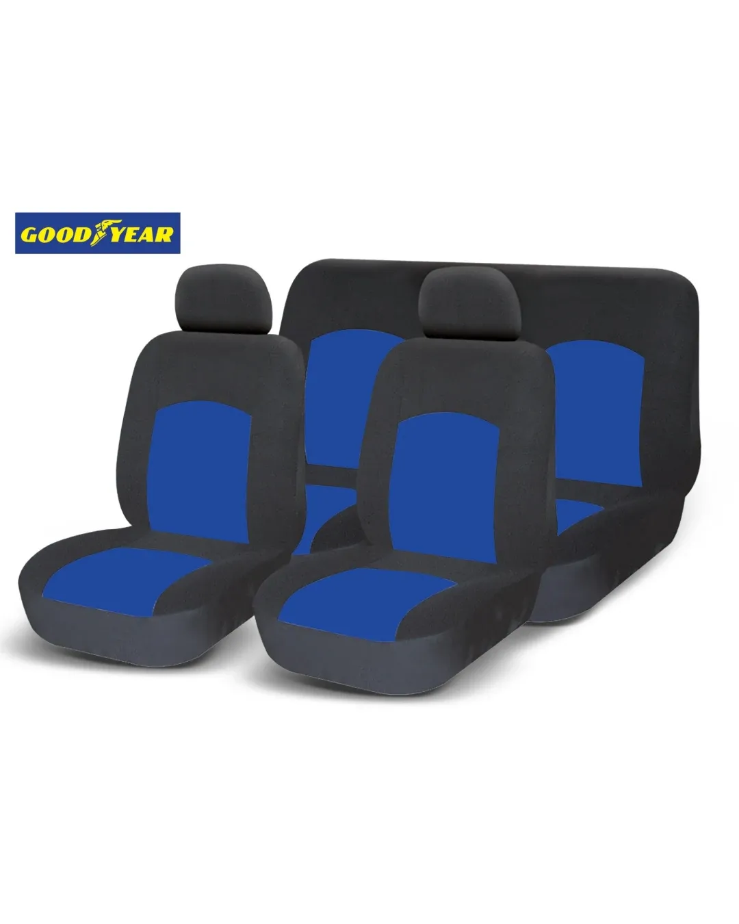 Универсална тапицерия пълен комплект калъфи за предни и задни цели седалки от текстил в синьо-черно Goodyear Гудиър GDY0409