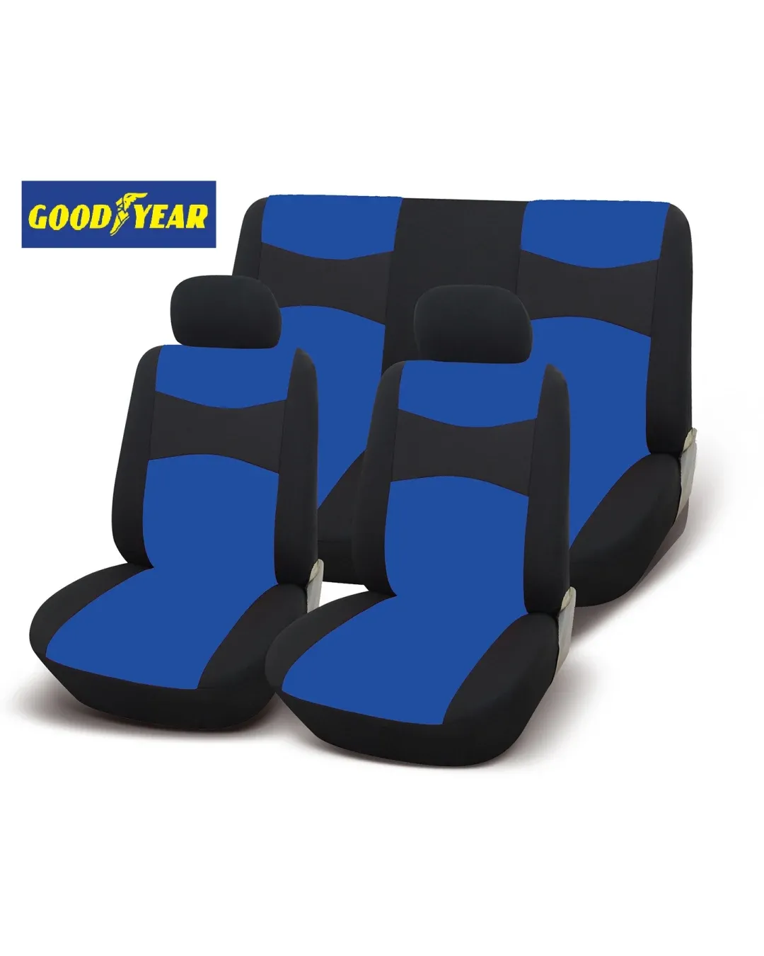 Универсална тапицерия пълен комплект калъфи за предни и задни цели седалки от текстил в синьо-черно Goodyear Гудиър GDY0411