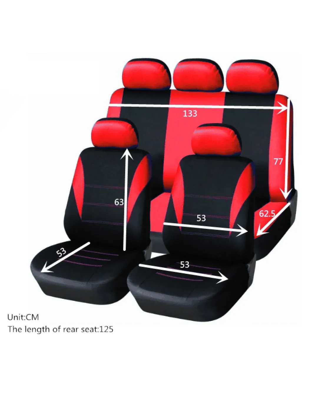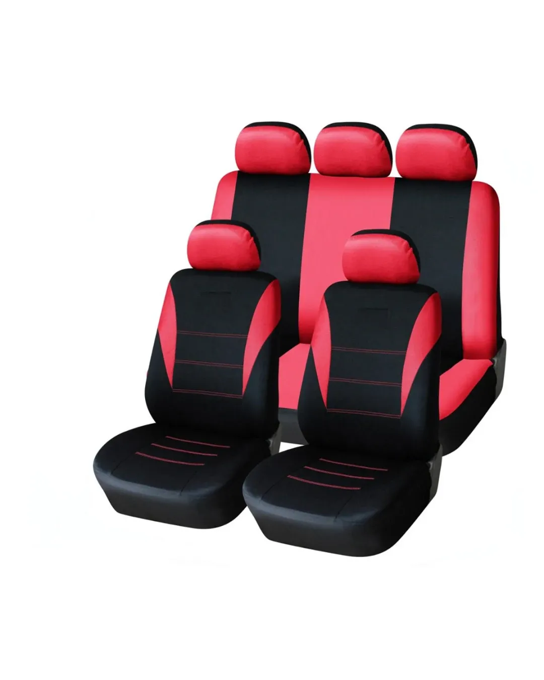 Универсална тапицерия, пълен комплект калъфи за предни и задни цели седалки,текстил в червено-черно