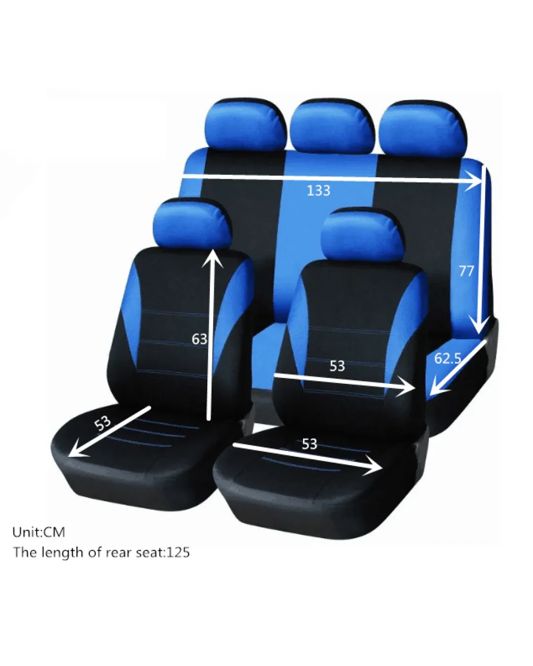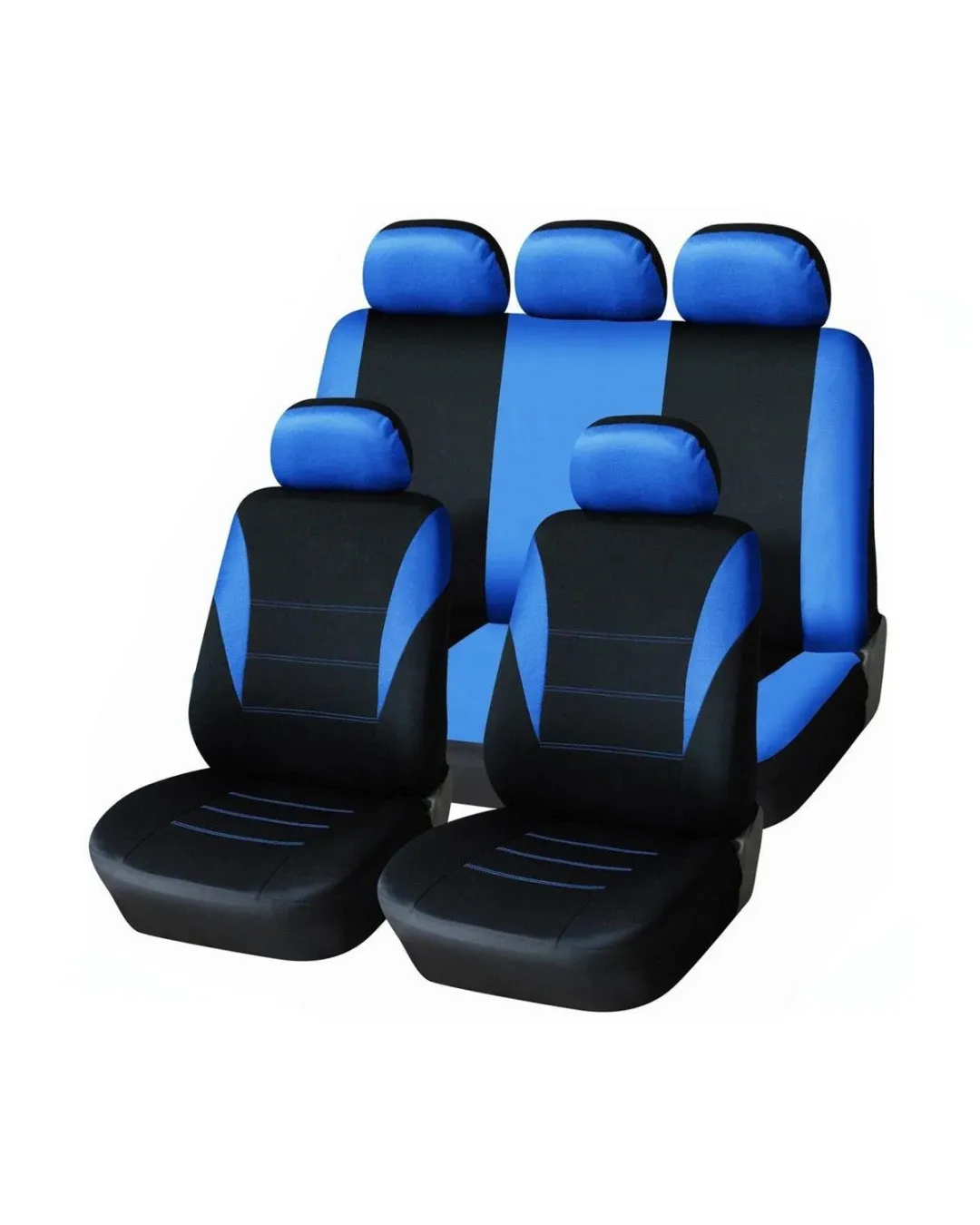 Универсална тапицерия, пълен комплект калъфи за предни и задни цели седалки,текстил в синьо-черно
