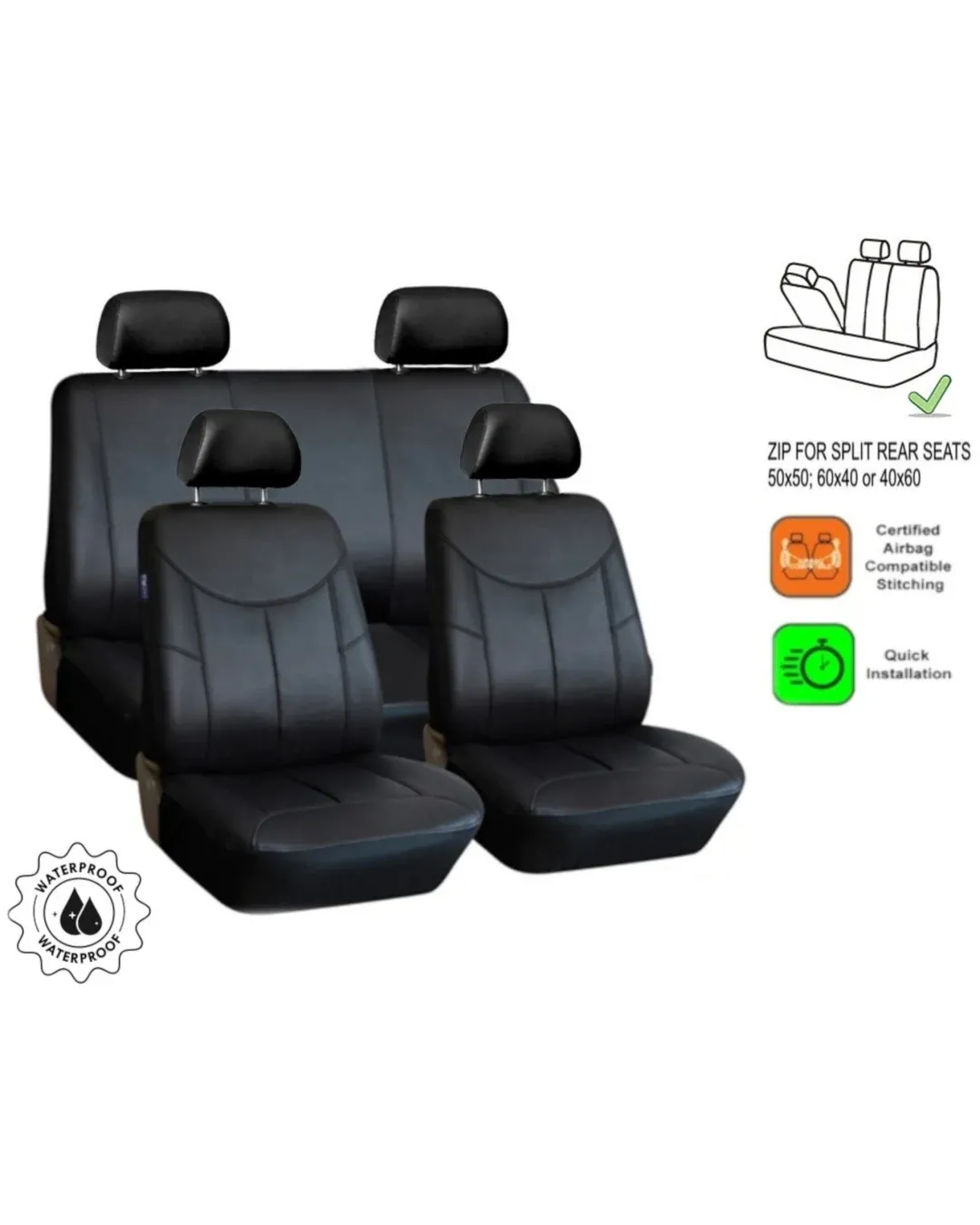 Тапицерията за задните седалки разполагат с 3 ципа, като съответно са подходящи за разделени седалки и покриват седалки от типа 50/50 или 60/40 или 40/60