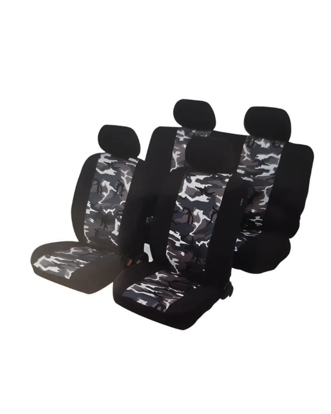 Универсални калъфи, тапицерия за предни и задни седалки за автомобил, джип - пълен компкект в цвят черно-сив камуфлаж