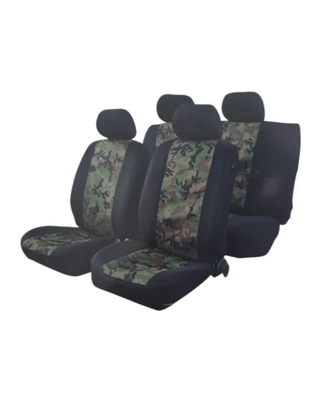 Универсални калъфи, тапицерия за предни и задни седалки за автомобил, джип - пълен компкект в цвят черно-зелен камуфлаж