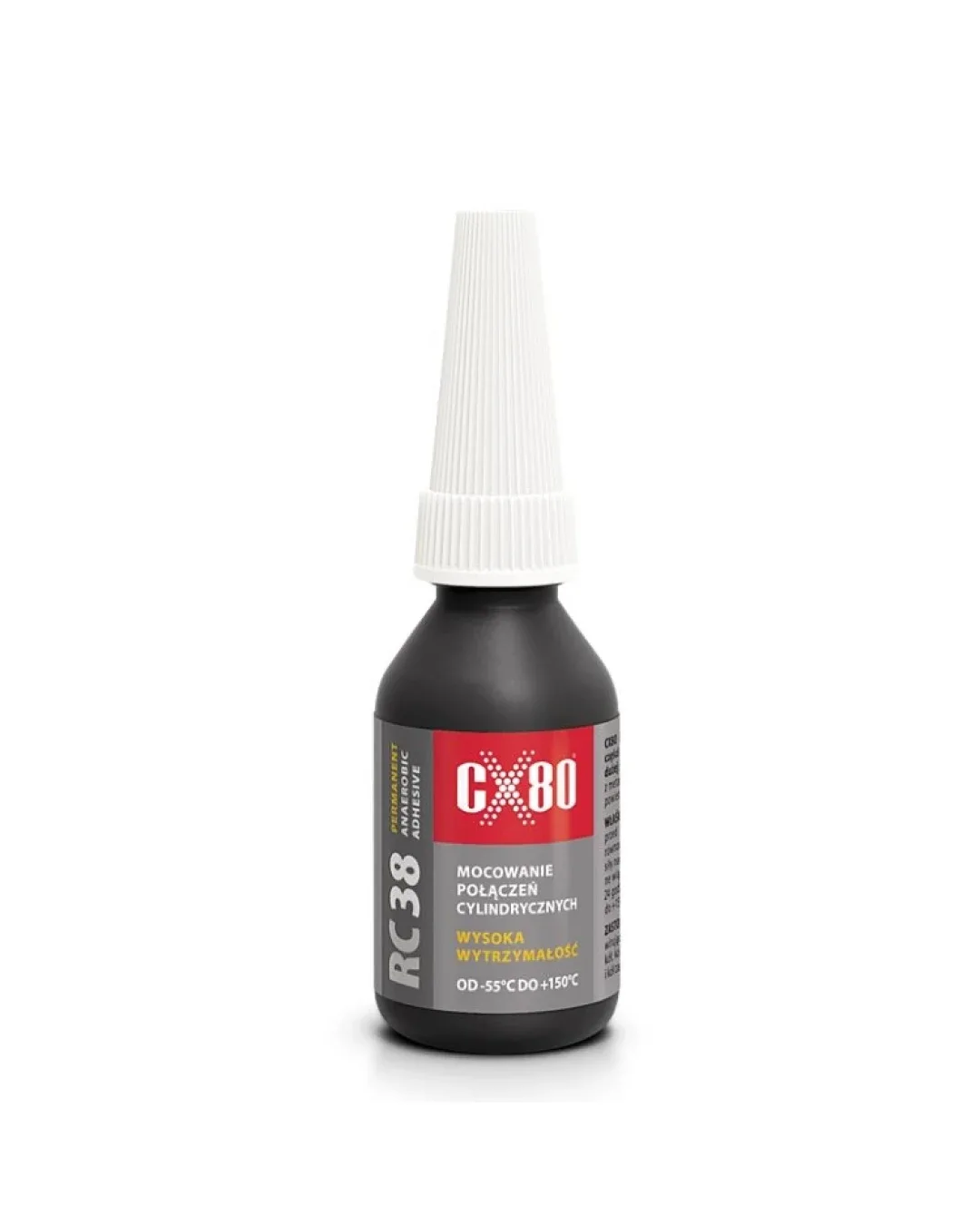 CX80 Уплътнител за резби RC38 10ml е анаеробно лепило за фиксиране на цилиндрични части с много висока якост на свързване. Свързва се при контакт с метални повърхности, при липса на достъп на въздух.