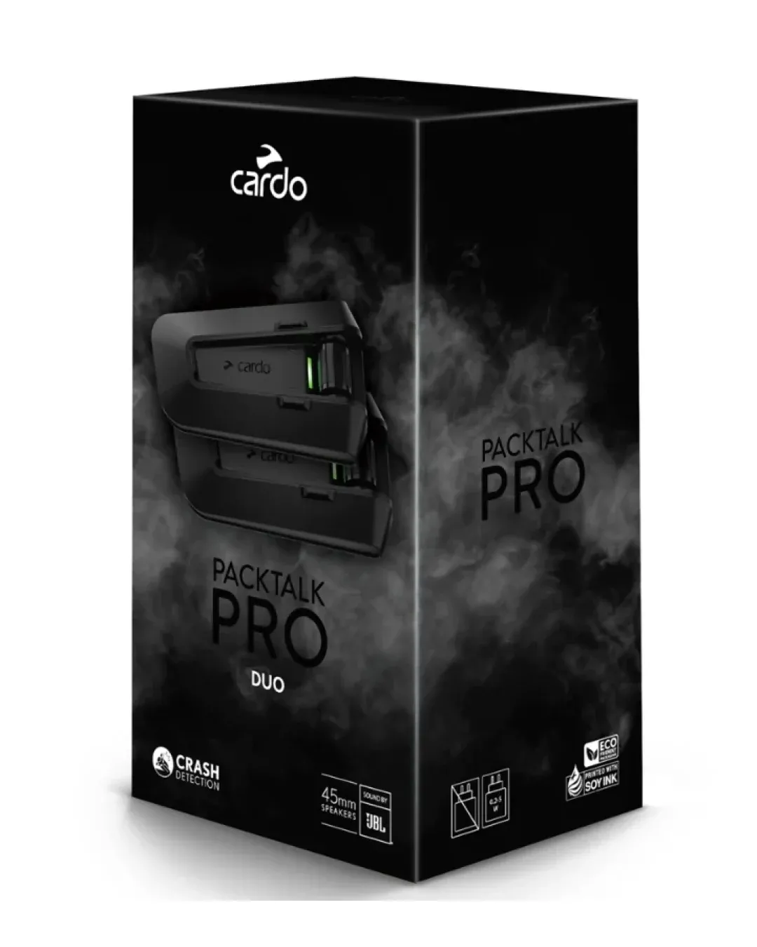 PACKTALK PRO идва с вграден сензор за катастрофа, създаден специално за мотоциклетисти на пътя. Той усеща какво чувства главата ви и знае точно кога да изпрати това важно спешно известие, когато нещата се объркат. Но това не спира дотук. С първокласните 45 мм високоговорители JBL като стандарт, не очаквайте нищо друго освен най-добрия звук. С изцяло черен матов екстериор . Автоматично включване/изключване, 15 членове на групата DMC и дизайн IP67 са там, за да увеличат вашия активен начин на живот. PACKTALK PRO - умопомрачителната производителност вече е стандартна.