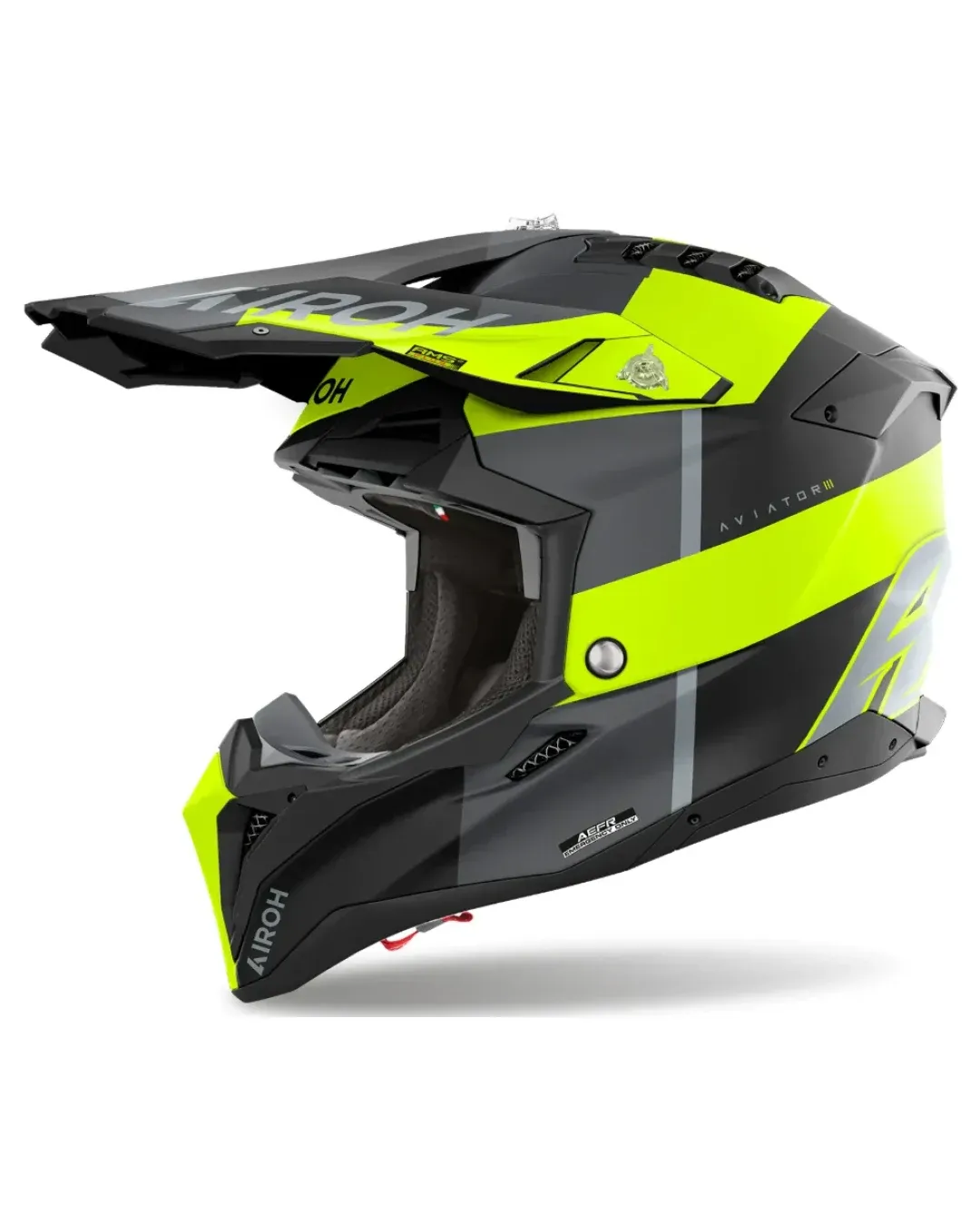 Airoh Aviator 3 вдига летвата и оставя всички зад гърба си. Различна каска, много сериозна, поднесена към вас от Airoh по специален начин, в типичните им графики, дизайн и цветове, оставящи ви безсилни при избор - уникална! Aviator 3 затруднява всяка конкуренцията като полага изцяло нови стандарти при офроуд каските.