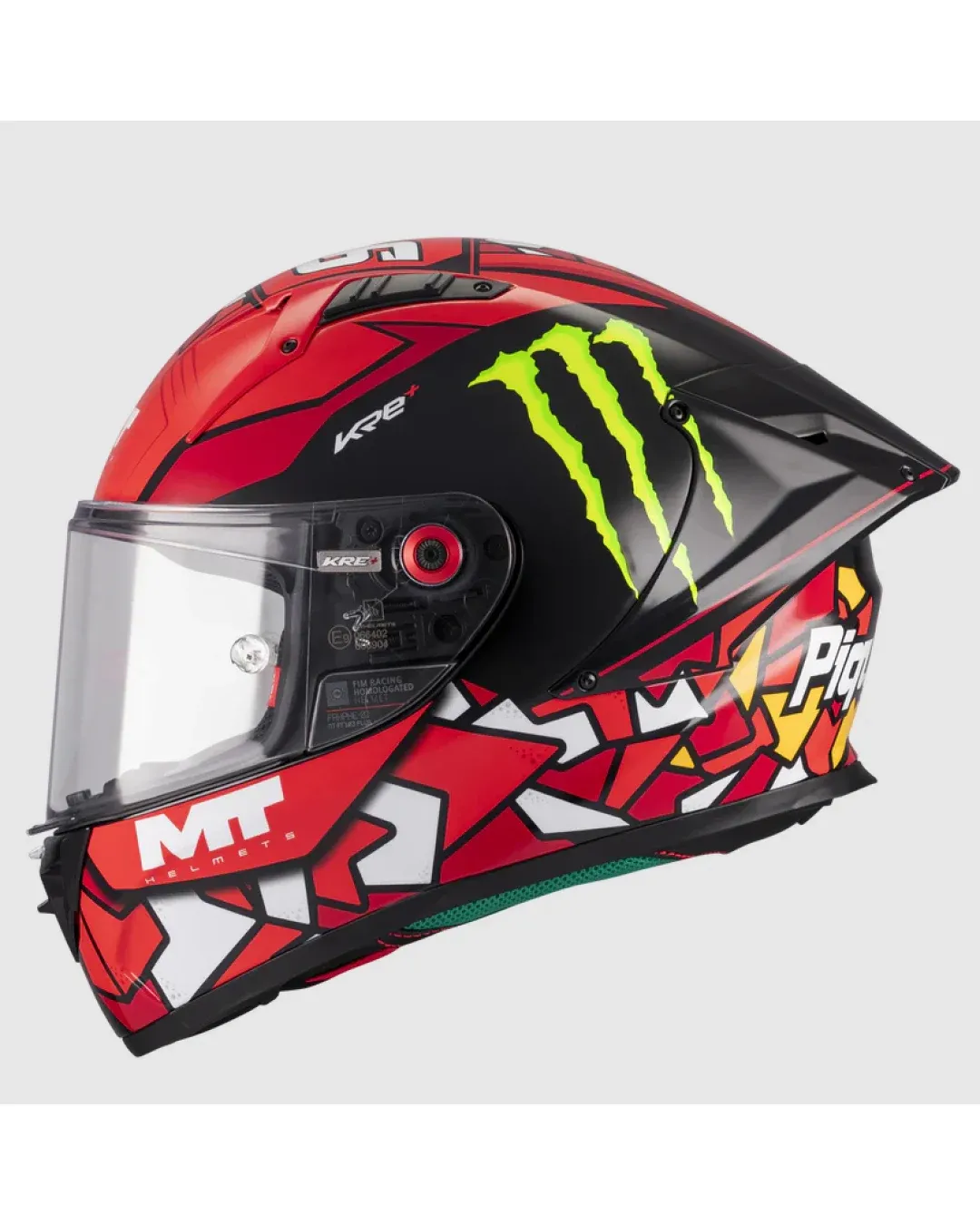 - KRE+ Pure е с новото лого „racing MT Helmets“. Като нашата каска, най-фокусирана върху състезанията, KRE+ Pure отнася нашата философия „From Race to Road“ още по-далеч с тази нова емблема.