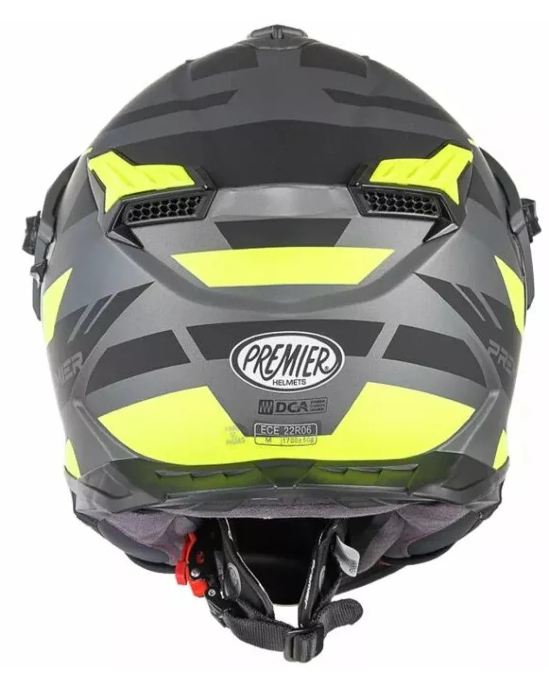- Специално разработеният блок за затваряне на визьора върху предпазителя на брадичката е специален механизъм, който с просто щракване прави каската по-тиха и безопасна дори при високи скорости.