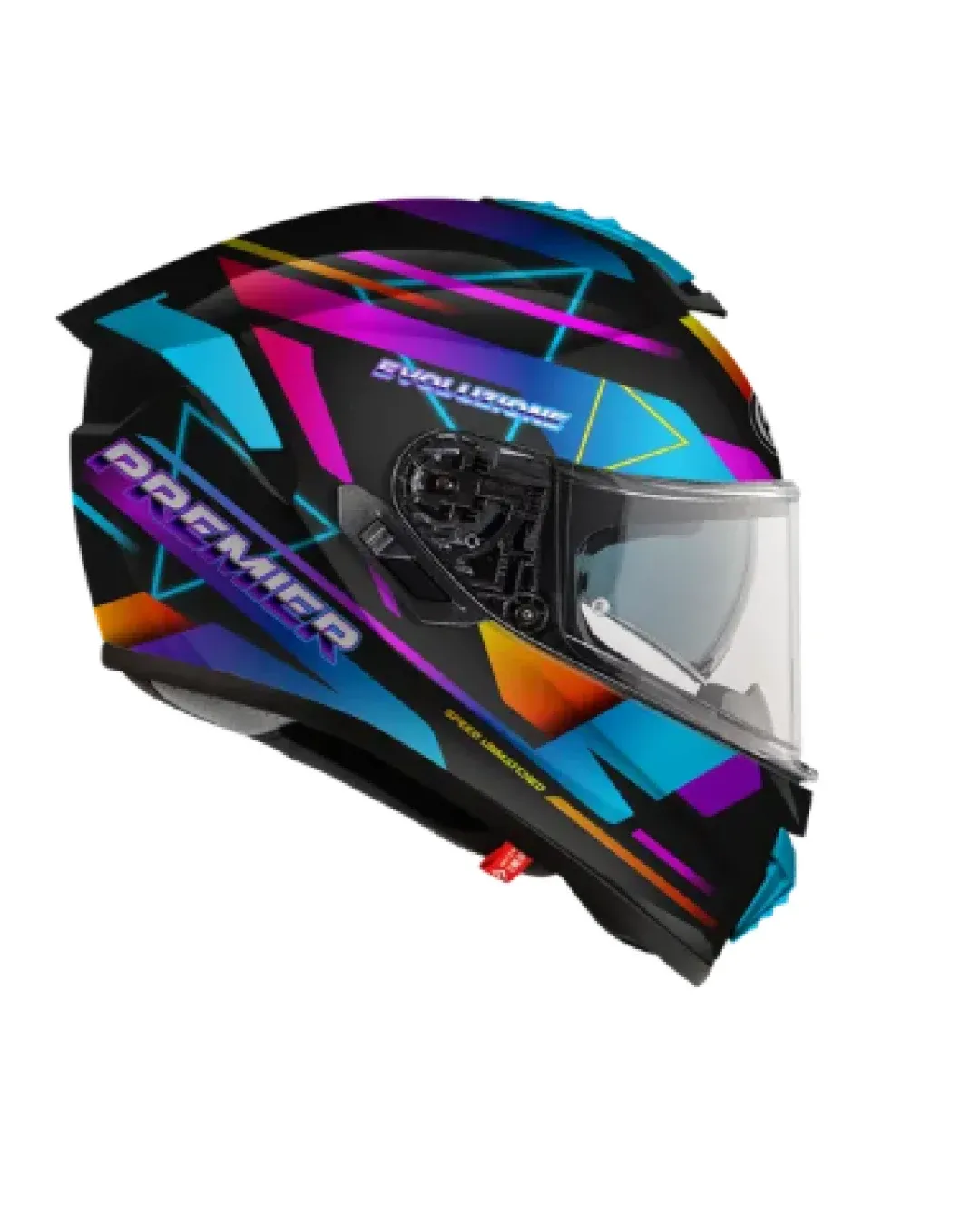 - Системата за вентилация се състои от преден вентилационен отвор, също така един, разположен на брадичката, и заден екстрактор, позволяващ оптимален въздухообмен във вътрешността на каската.