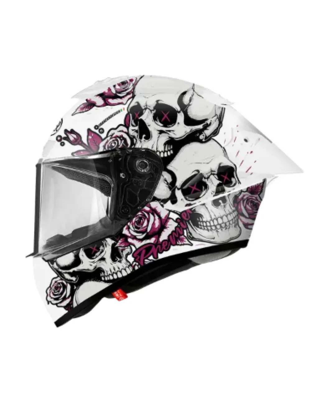 - Агресивният дизайн на задния спойлер подобрява аеродинамиката и подчертава спортния характер на каската.