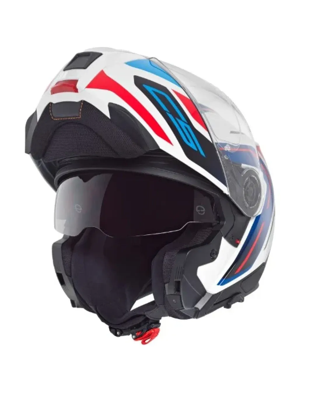 - светлоотразителни зони върху ветрозащитния елемент, подложката за врата, уплътнението на визьора и стикерите на каската за подобрена видимост при каране с отворена и затворена част на брадичката