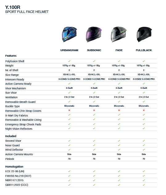С бързо свалящ се визьор без инструменти, включен Pinlock и вградени слънчеви очила, които филтрират 99% от UV лъчите, тази каска предлага практичност и комфорт на всяка крачка. Emergency Quick Release System (EQRS) допълва високото ниво на безопасност.