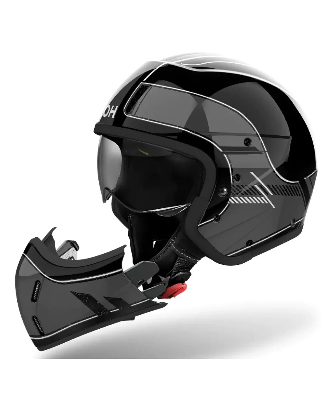 - J110 определено е най-новото, което Airoh предлагат - модерна, функционална, гъвкава откъм приложение и готова за всяко пътуване, каска 2 в 1, за всички онези, които избират нестардантен и завладяващ дизайн с доказан комфорт и защита. Винаги актуална!