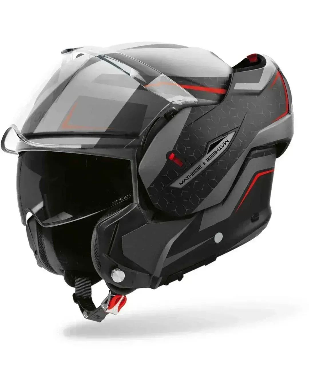 Airoh Mathisse II Magnet Matt е модуларна (flip-up) каска от най-висок клас, която се отличава със специфична графична разцветка ("Magnet") и матово покритие. Тя е еволюция на класическия модел Mathisse, преработена, за да отговори на най-новите изисквания за безопасност.