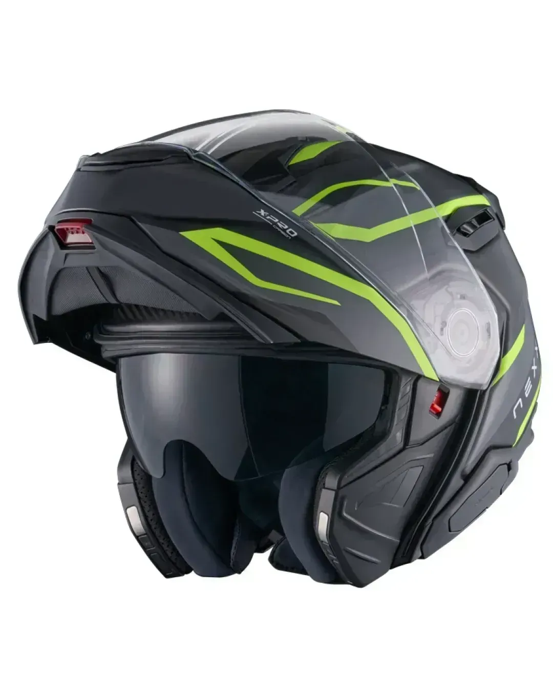 NEXX X.LIFETOUR PRO Mile Neon Gray е върховият карбонов модел на марката, съчетаващ аерокосмическа лекота с патентована система за пълна звукоизолация. Тя предлага уникална вентилация чрез алвеоларна мрежа и панорамна видимост, което я прави една от най-тихите и комфортни модуларни каски за дълги пътувания. Изборът на този модел гарантира максимална сигурност по новия стандарт ECE 22.06, без да натоварва врата ви при продължително каране.