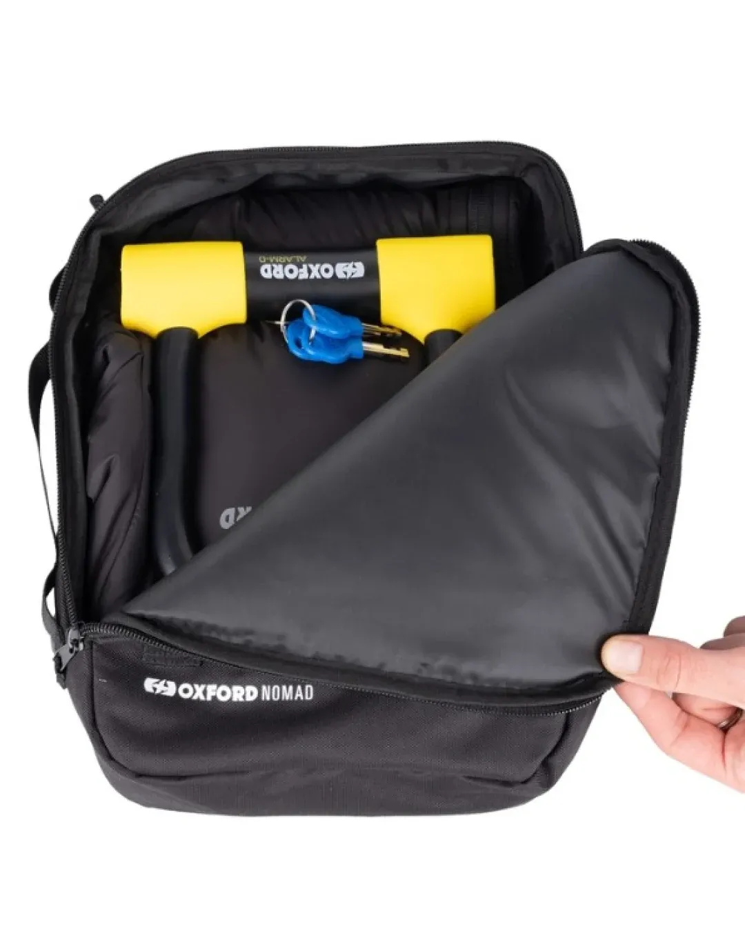 - Oxford NOMAD 4l Utility Pouch е многофункционален багажник, предназначен за по-големи предмети. С предния панел от ремъци, тя служи и като вторична точка за закрепване на други аксесоари Oxford NOMAD.