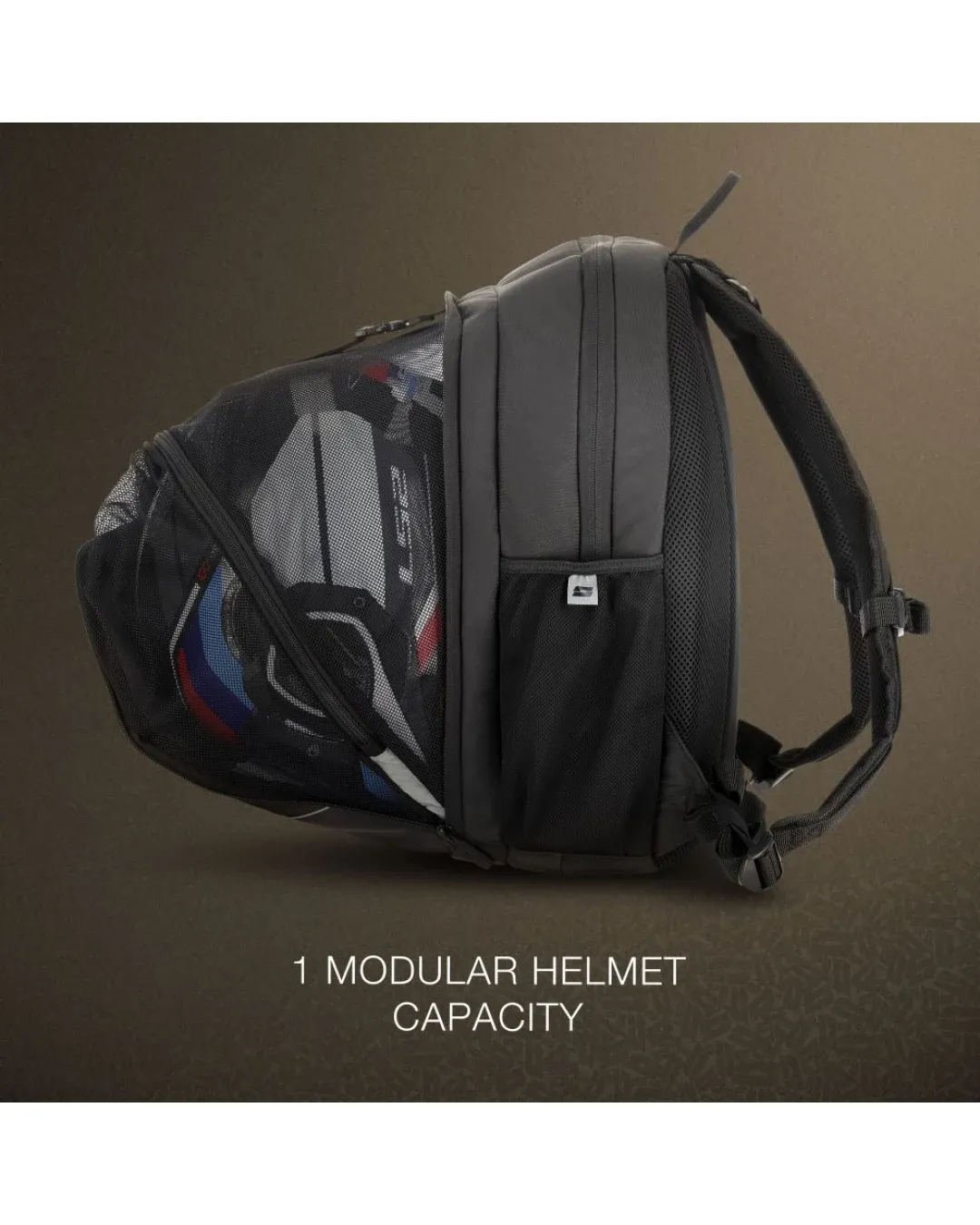- 1 мрежест джоб с цип за поставяне на модулна каска, с 2 регулируеми ремъка за осигуряване на стабилност.